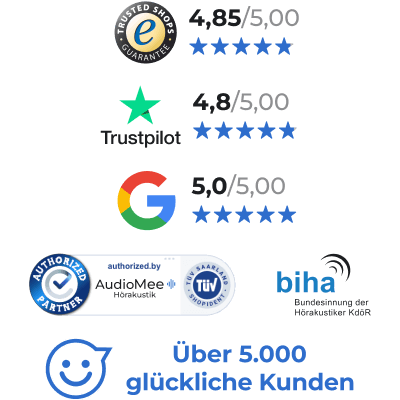 AudioMee macht es möglich: Als spezialisierter Hörakustik-Service bringen wir Premium-Hörgeräte direkt zu Ihnen nach Hause – bequem, kostenlos und ohne versteckte Kosten. Über 5.000 zufriedene Kunden in ganz Deutschland vertrauen bereits auf unseren persönlichen Service. Lesen Sie selbst, was unsere Kunden über ihre Erfahrungen berichten: